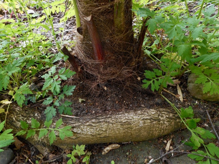 De eerste jaren extra verwennen en zonodig watergeven want de grond bij een haag blijft kurkdroog. Ik vermeng de kleigrond hier met potgrond van gesneuvelde kuipplanten en een schep organische mest (DCM granulaat). Bijgaande foto is van een Trachycarpus die als zaailing is aangeplant. Staat onder een boom waarvan de wortels de palm inmiddels bijna omklemmen.