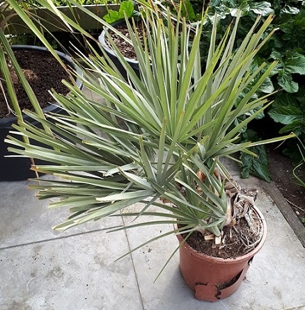 Na het uitproberen van de meest gangbare palmsoorten heb ik besloten eens iets anders te proberen, namelijk Nannorrhops ritchiana.