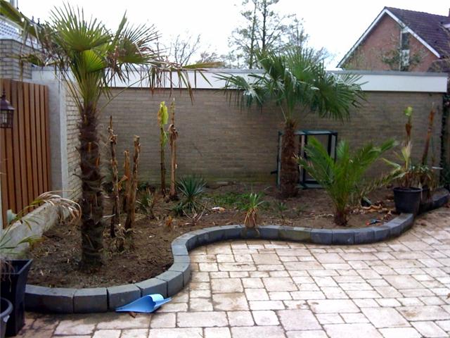 Nu zijn we een jaar verder en beide palmen zijn nog niks gegroeid, ik heb de speren gecontroleerd door er hard aan te trekken maar deze zitten muurvast.