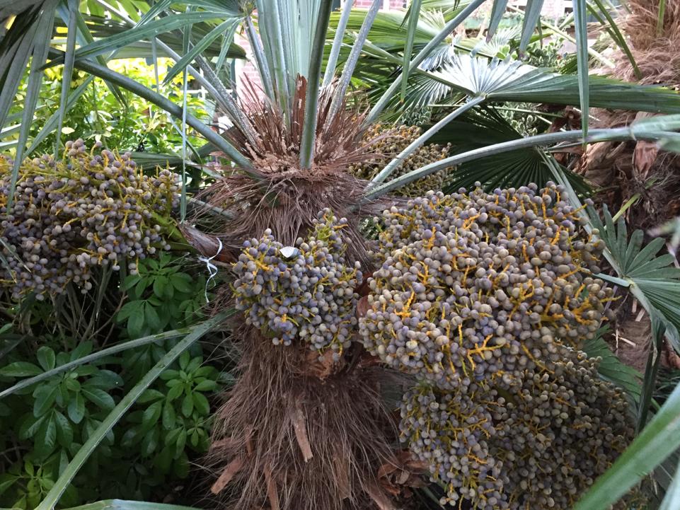 Om een beeld te geven van het bouwprincipe van een vrouwelijke palmbloem, deze foto is gemaakt van Chamaerops humilis. De bloem van Trachycarpus fortunei lijkt er erg op, tenslotte werd deze soort voorheen ingedeeld bij het genus Chamaerops, i.e. de oude naam Chamaerops excelsa waar met name kwekers uit Zuid Europa nog mee werken.