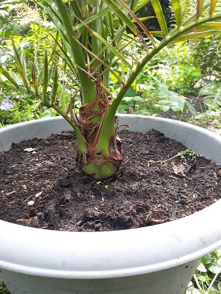 draco schreef:De palm mag best nog wat dieper staan, dat bevordert het uitbotten van nieuwe wortels uit de stambasis. Om te stabiliseren kun je ter ondersteuning enkele maaskeien er omheen leggen.