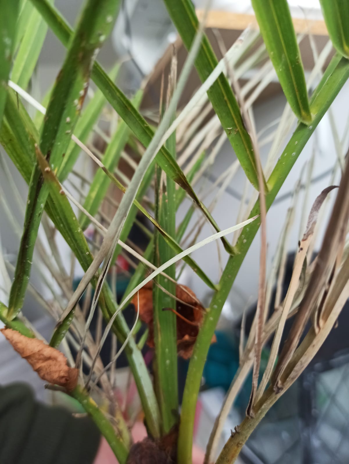 Het bruine blad kan eraf btw. Het afstoten van de buitenste bladeren is overigens wel normaal.