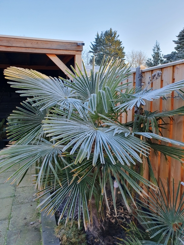 Palmen met rijp erop. Blijft een bijzonder gezicht!