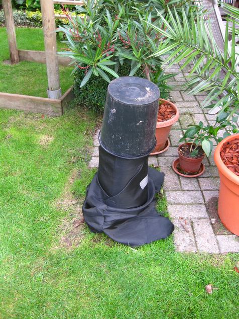 De andere een 20cm daar zag ik wel nog een beetje groen dus er is nog hoop, heb er bij alle2 een laagje cuprex poeder opgestrooit en een zwarte pot overgezet ( die er bij droog weer afgaat) om zo extra warmte te krijgen als de zon ooooit nog eens schijnt , bij de grootste heb ik ook nog een extra zwarte luchtdoorlatende doek rondgedaan ook om zo weer extra warmte te krijgen .