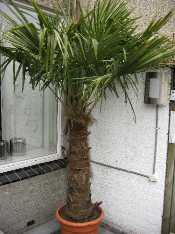 Jammer dat ze niet in volle grond kunnen.Kan je nergens op een geschikte plaats een stuk uitbreken en een plantvak maken .Trachycarpussen worden elk jaar groter en groter en snoeien kan dus niet dus hebben ze om de paar jaar best een grotere bak om mooi en gezond te blijven want bovengrond en ondergronds moet de plant in evenwicht blijven .Als de wortels geen bijkomende plaats hebben gaat dit na een paar jaar ook de groei remmen en dan riskeer je geen goed groeiende palm meer te hebben,beginnende problemen,gelere bladeren...Ook kan je de wortels in bakken moeilijk beschermen tijdens koude periodes,de bovengrondse delen kunnen heel wat vorst aan .Maar de wortels kunnen veel minder aan en al bij een gedeeltelijke bevriezing zie je het jaar erop dat er te weinig nieuwe bladeren komen.Een echt gezonde grote Trachycarpus fortunei krijgt ieder jaar 12-15 bladeren en de kruin heeft minstens 30 bladeren,als je dit niet hebt met een grote Trachy na 5 j aangeplant te zijn is de toestand van de palm niet optimaal;om een voorbeeld te geven misschien staat hij niet uit de wind en waaien er steeds teveel bladeren kapot.Veel Trachy.fortunei gaan gewoon op den duur al dood omdat ze in de wind staan.Gr Eddy