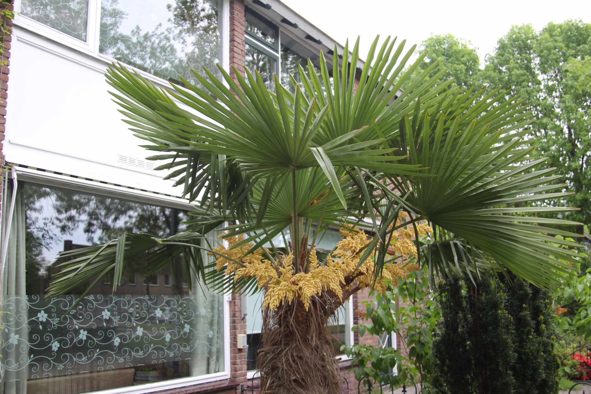 Na 10 jaar bloeit mijn Trachycarpus fortunei voor de eerste keer. En het is een mannetje. ik dus wat stuifmeel kunnen opsturen waneer dat vrijkomt. grt,