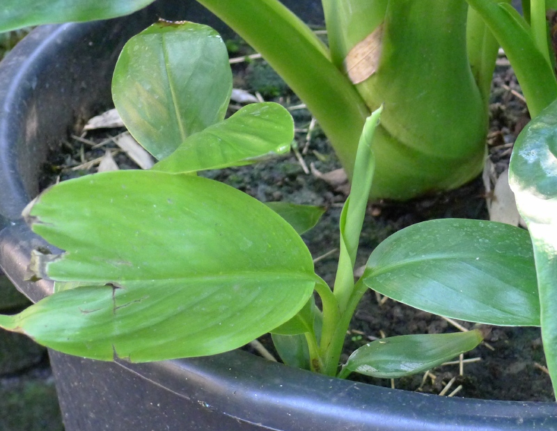 In eerste instantie dacht ik, wat blad betreft, een of andere banaan. Toen ik er echter eentje uit de grond trok zag ik een lange rechte pin (wortel). Had ik nog niet eerder gezien bij een banaan (zoveel ervaring heb ik daar nu ook weer niet mee).