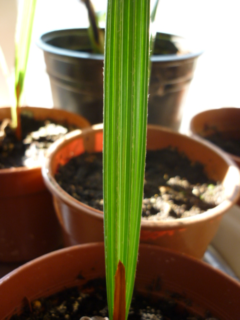 Jubaea chilensis heeft ook V-vormige bladeren. De zaden zijn redelijk groot maar, dacht ik, ronder van vorm.