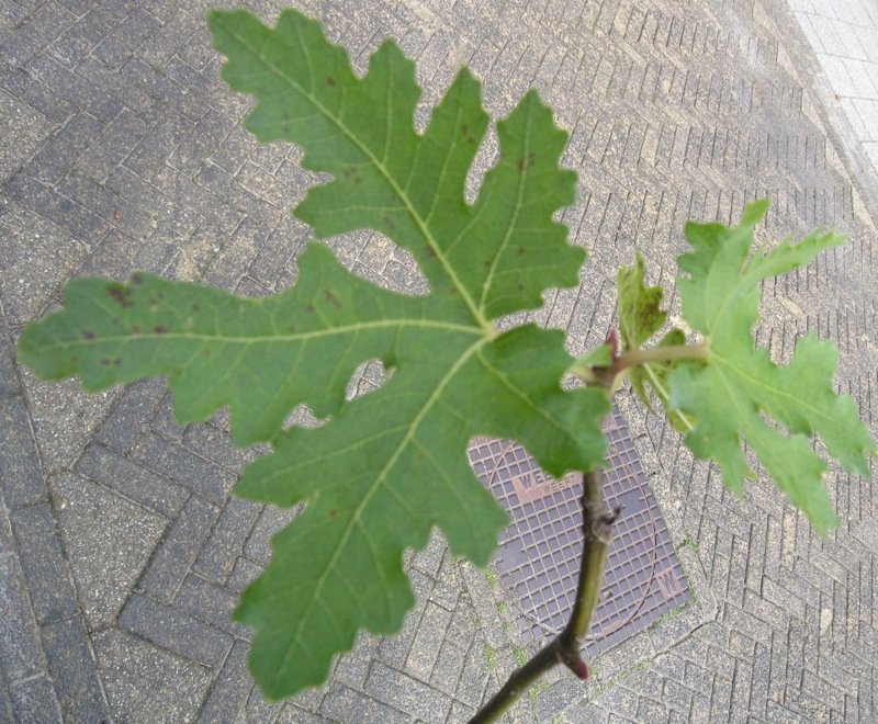 Ik heb dit weekend een flinke vijg over kunnen nemen van iemand. Vrijdag uit de grond gehaald, zaterdag opgehaald en bij mij in de grond. De wortels lijken niet noemenswaardig beschadigd. Mijn andere vijgen hadden intussen hun blad al grotendeels verloren, maar deze bleek nog vol in blad te staan. Het verplanten vond hij dus niet zo leuk: