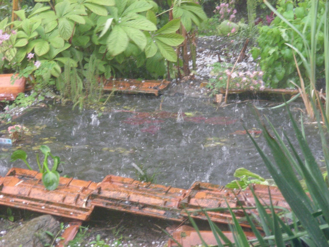 De vijver wordt natuurlijk gevuld, nu moet de hagel nog smelten.