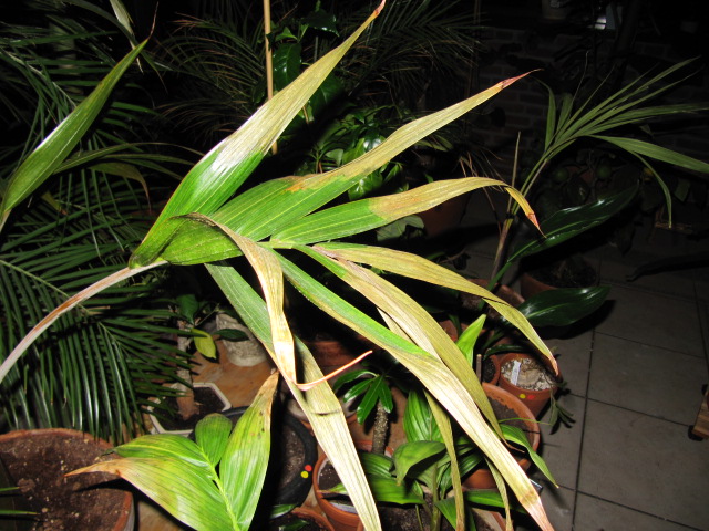 tja als de andere planten in die ruimte wel goed blijven,? er is wel een wortel probleempje aanwezig,controleer de waterhuishouding zeker,staat er geen water in de schotel en is de plant niet te nat? maar helemaal kurk droog kan ook niet bij die temp,15 graden is wel redelijk warm,zelf in mijn koele kamer groeit de palm nog door?en geen enkel bruine punt,ook in huiskamer waar verschillende palmen overwinteren en waar de temp erg schommeld,zit de groei er goed maar rustig in,ook geen bruine punten,zou bijna denken aan een spint aantasting ,zou als ik jou was toch voor de zekerheid even controleren,je weet nooit,je kan er maar beter vroeg bij zijn,die kleine beestjes zuigen sappen uit de plant,en die kan zo ook verdrogen,zeker je nu verteld dat het ineens allemaal sneller achteruit gaat,dus ja je heb even wat te doen,controleer alles even,spint is soms lastig te zien als de aantasting net is begonnen,maar als je goed kijkt kan je van die hele kleine spinnetjes zien lopen,maar dan moet je wel goede ogen hebben,maar bij een redelijke aantasting is het wel duidelijk te zien aan de meestal onderkant van de bladeren wat wit achtige pitjes en webjes,soms net wat wit poederachtig spul,mocht je er iets van waarnemen,kan je het wel makkelijk verdelgen met anti spint,,m.v.g.paul,