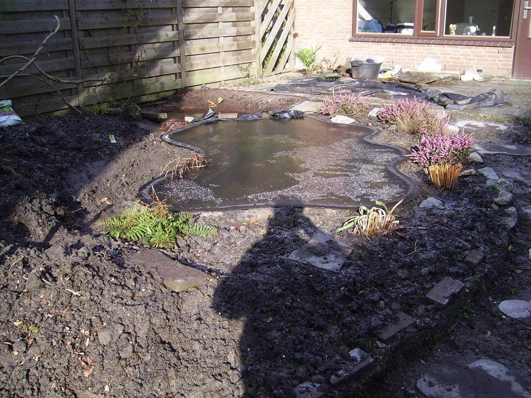 Het helofytenfilter met waterval is er niet meer van gekomen, op de foto alleen het eerste begin van een leuk idee ;)