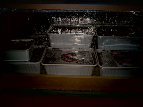 Tot nu toe nog geen kiemers maar die komen wel als je ze maar warm en vochtig houd.