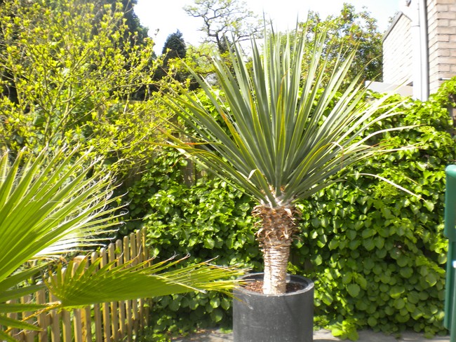 De palm zal dan waarschijnlijk wel flink aan het groeien gaan, want de -explosieve- groei blijft toch best achter. Ik zit nog op een manier te broeden dat ik de palm op een verhoogde manier toch in de volle grond kan zetten, zoiets als ik laatst met mijn Trachycarpus fortunei heb gedaan; daarvoor heb ik een gat in het beton van het terras gehakt, daar een bak ingezet waar ik de bodem uit heb gehaald, zodat de boom -verhoogd- toch in de volle grond staat en lekker door kan groeien, zonder dat je er last van hebt.