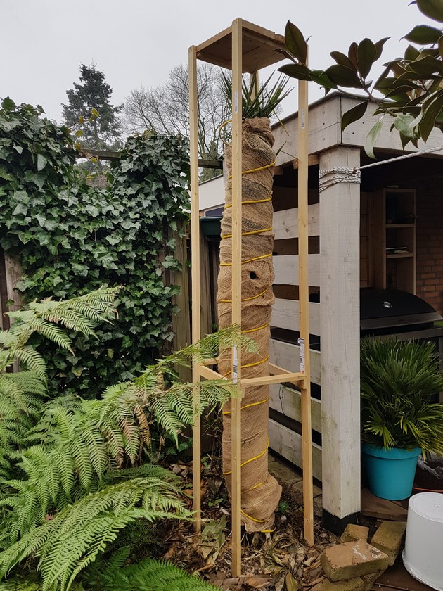 Ik had hem deze winter gewoon met wat vliesdoek ingepakt en wat schors vanonder rond de stap, niet voldoende dus.