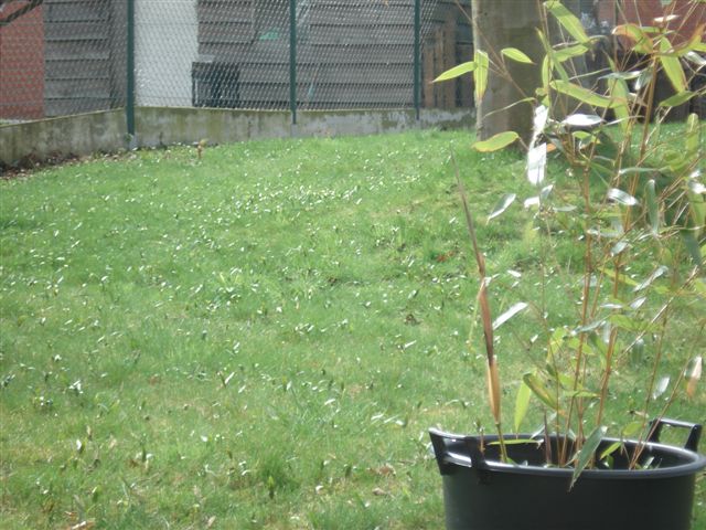 Hier ter illustratie mijn gazon nu. Al die hogere sprietjes zijn Esdoorn zaailingen