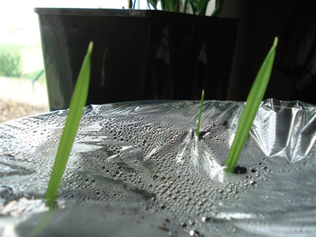 De Evergladespalm is gekiemd en kreeg een nieuw transparant dakje.