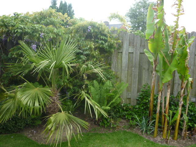 Heel mooi! Leuk om even in je tuin te mogen kijken... Wat een enorme Washingtonia trouwens (en wat een klein potje waar die in staat ) Heb je die pas gekocht of staat die al lang in die kleine pot?