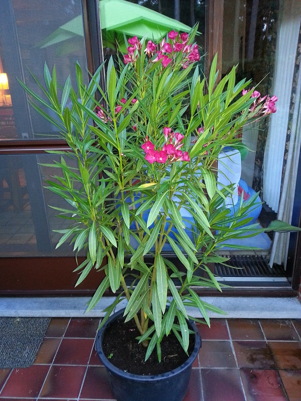 Bovendien zie ik dat je een enkelbloeiende roze oleander hebt, bij mij zijn dat de best bloeiende (ik heb de varianten Atlas en Villa Romaine, beide soorten geweldige bloeiers). De dubbelbloemige soorten die ik heb, hebben veel meer tijd nodig om tot bloei te komen.