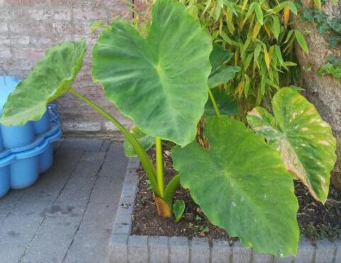 - Stukje met hosta's, sikkemensis pups, Canna's, maurelli en een stekje van een vijg.