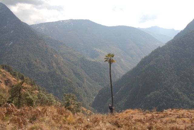 Over oudere palmen die dunnere stammen krijgen bijgaand close up foto's van beneden naar boven genomen van een palm uit het wild die zelfs door winderosie op 2350 meter hoogte stamverdunning heeft. Sta er altijd van vesteld hoe sterk die stammen zijn.