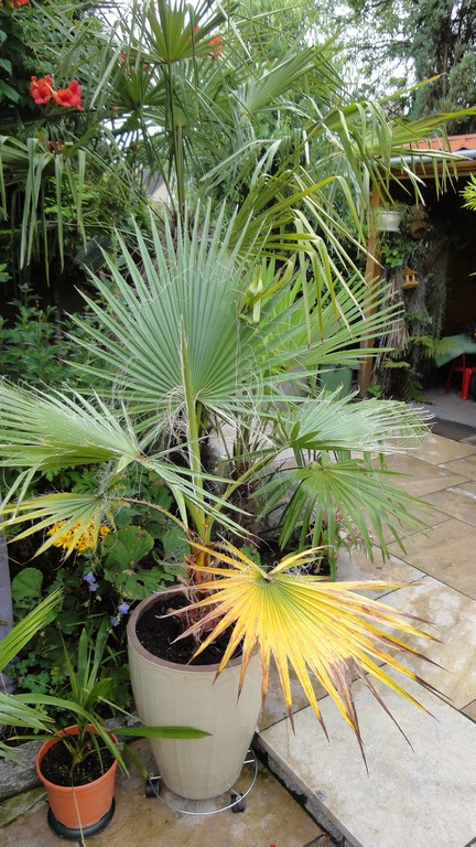 De kunst van palmen gezond houden in kuipen zit hem in mijn optiek in het in balans brengen van verhoudingen. Iets wat voor een volle grond palm haast een automatisme is.