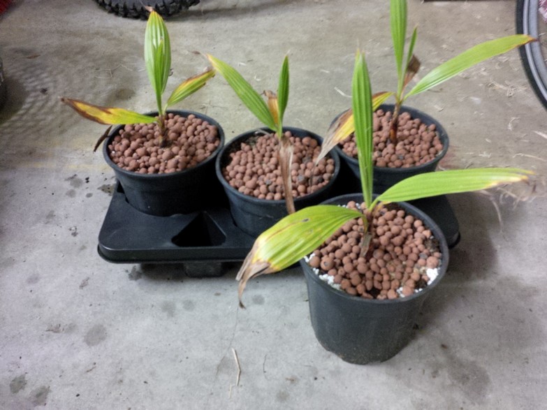 in oktober 2010 heb ik op de beach-boulevard in Valencia, Spanje, ongeveer 200 palmzaden geraapt. In de winter van 2010 zijn die alemaal ontkiemt. In 2011 en 2012 heb ik ze uitgeplant, maar in de winter vergeten; ik heb er toen niet goed voor gezorgd. Ze zijn toen "en masse" bevroren. Ik had er vijftig overlevend over. Daar zijn afgelopen zomerseizoen ongeveer dertig van overleden in de zon. Ik heb er momenteel een twintigtal over. Er stond nog een setje van vier in een bloempot en die heb ik vanavond uitgeplant in aparte potten.