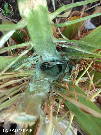 Mogelijks doen anderen het anders... in ieder geval de grote ph. canariensis bij Palmhunter ( staat al 20 jaar in volle grond) had vorige winter ook speerrot, alle bladeren waren eraf. Zijn methode was een ronde geul maken rond de plant, vol gooien met blauwe korrel, en dan veel water geven. We hebben de plant gezien, en hij had toch weer een behoorlijk aantal bladeren, en ze zagen na deze winter er toch goed uit.