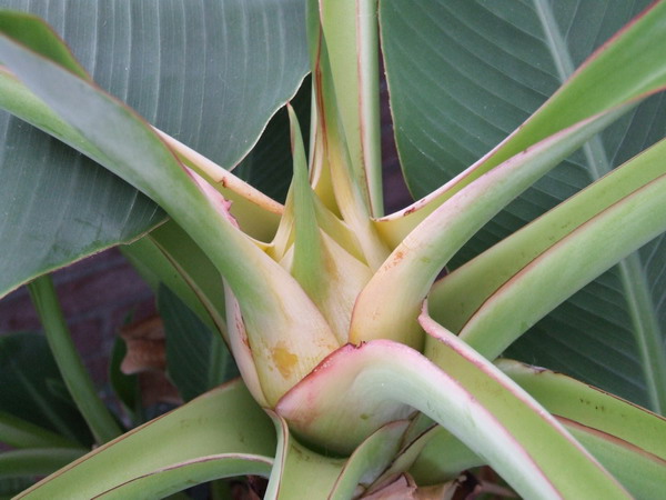 Mijn Musa lasiocarpa gaat bloeien, staat in een 50 liter pot twee jaar en nu het derde jaar een bloem.... :D