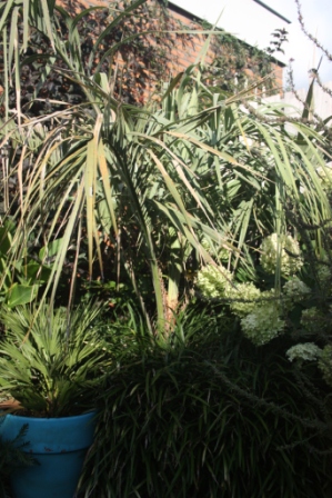 Butia blijft voor mij een van de allermooiste soorten met de elegant gebogen bladstelen, de kleur en zijn (welliswaar in ons klimaat beperkte) winterhardheid.