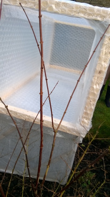Deze is "beschoten met bubbel folie(dikke versie) op de buitenkant van de palen alsook op de binnenkant van de palen zo krijg je koude lucht tussen twee lagen isolatie en dit zal beter isoleren. Denk ik, hoop ik :)