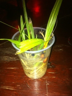 Bij de Chinees op de hoek (op zo ongeveer iedere hoek zit een chinese supermarkt) stonden deze te koop voor 25 gld per stuk (E10,-) de moeite om mee te nemen dus, maar wat het nu precies is..waarschijnlijk een Goudpalm, Areca of ook wel Dypsis Lutescens. Na wat probleempjes met beestjes een week of twee geleden, komen ze er weer prima bovenop: