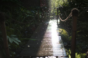 houten tuinpad met heel veel bamboe eromheen.jpg