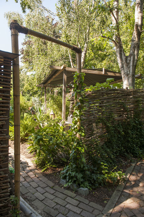 En die bamboe "poort/pergola" is gaaf!