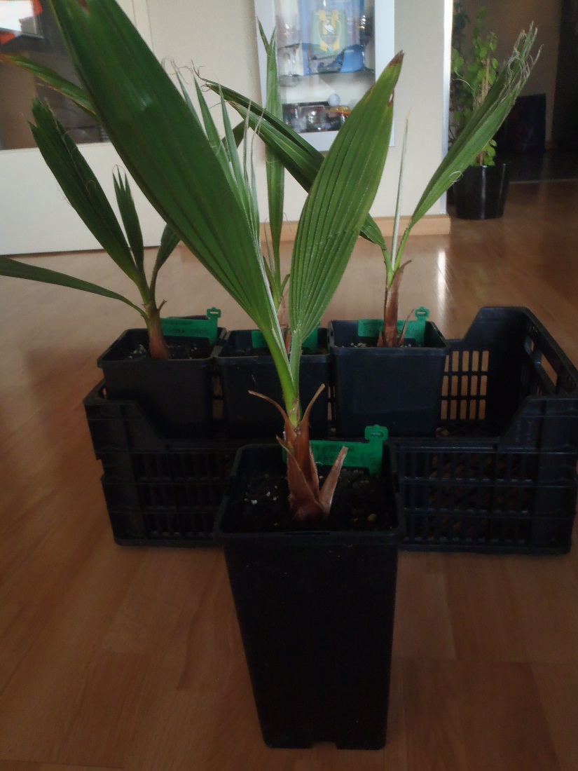 Zie foto van mijn filifera's in tray 104 en na 21 maanden in een 2liter pot.