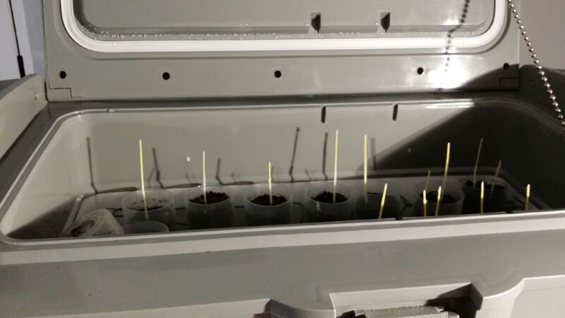Ralph, ik weet niet wat daar spriet in je incubator, maar ik zou ze er nu uithalen en direkt in het licht zetten. Ze moeten namelijk nu bladgroen gaan aanmaken. Dat is essentieel voor hun verdere groei.
