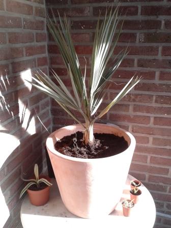 Ik heb sinds gisteren een nannorrhops sp silver iran. Nu lees ik op de palmvrienden wiki dat de nannorrhops arabica 'silver' na het verpotten niet in de volle zon mag staan, tot dat deze goed doorworteld is. Geldt dit ook voor deze soort? Ik heb hem voorlopig onder de pergola gezet, waar hij 's morgens wat zon krijgt. Op de pergola liggen polycarbonaat platen die het meeste zonlicht voor de rest van de dag tegenhouden.