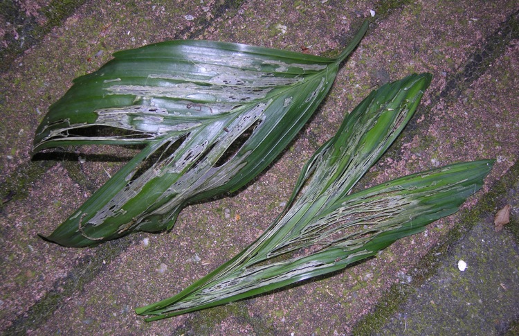 Hier worden de Chamaedorea absoluut met rust gelaten door de slakken. Misschien moet je meer hosta en lelie aanplanten