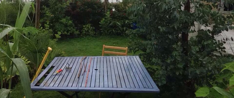 Moest hem erover zetten, alles is flink gegroeid en die Yucca rostrata is net de barriere om onze sloeber en hond in dit gedeelte niet te laten ravotten. Er staat zoveel moois omheen, die goed tot hun recht komen in dit gedeelte. Maar zijn allen tere planten, zoals de 4-delige collectie grootbloemige hibiscussen, hemerocallisen, enz... 1 knap en wacht maar een jaartje... Colocasia groep is daar naast, en groeien weelderig, ja veel te beleven daar zeg maar