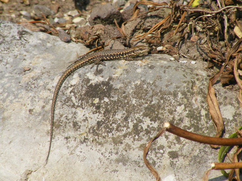 In de rotstuin stonden een aantal flinke opuntia's, jarloers om op te zijn! En natuurlijk om het plaatje compleet te maken een aantal muurhagedissen, italiaanse die 30 jaar geleden zijn uitgezet.