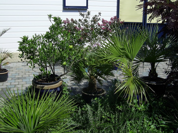 Mooi zeg, ik vind dat echt heel fraai exoten met conifeerachtigen op de achtergrond. fraaie planten, zeker je Butia en je Magnolia. Snoei je de laatste compact of groeit deze van zichzelf zo?