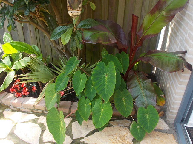 hier zijn nog wat foto's van onze tuin van 1 border staan verschillende foto's op waar je goed de groei van de bananenbomen kunt zien .