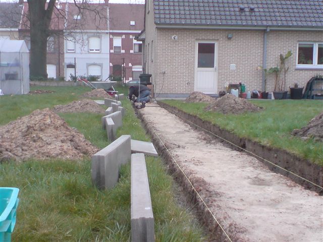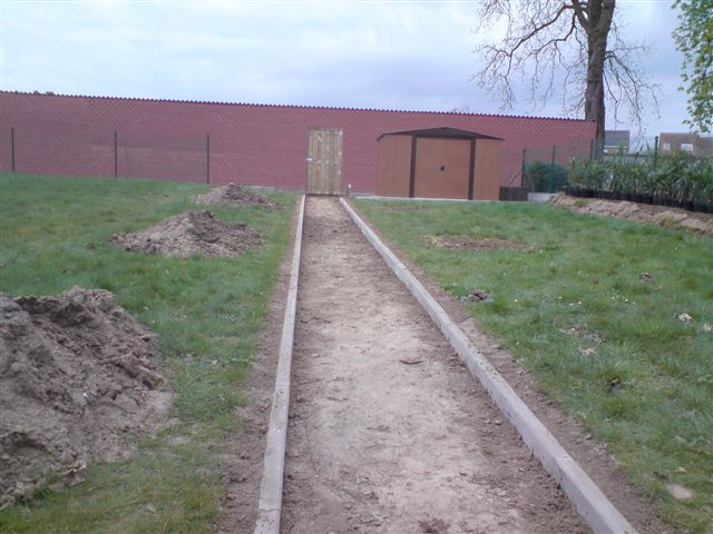 De grond kon mooi in de 'bekisting' die ik gemaakt heb met resterende staptegels.