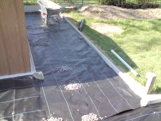 En ligt het geotextiel er ook. Nu nog afwachten wanneer het grind geleverd wordt.