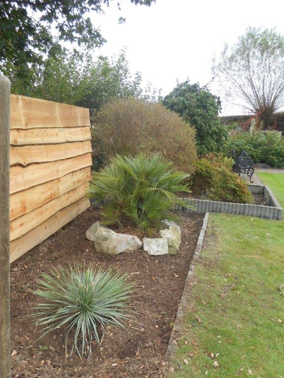 Links ziet het er voor ons al redelijk uit. Rechts nog veel werk, en plaats voor bananen, holle pijp en enkele originele bloemenbollen. Laat het maar vlug weer lente zijn!