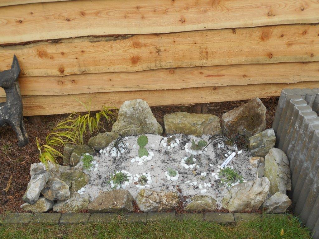 Links ziet het er voor ons al redelijk uit. Rechts nog veel werk, en plaats voor bananen, holle pijp en enkele originele bloemenbollen. Laat het maar vlug weer lente zijn!