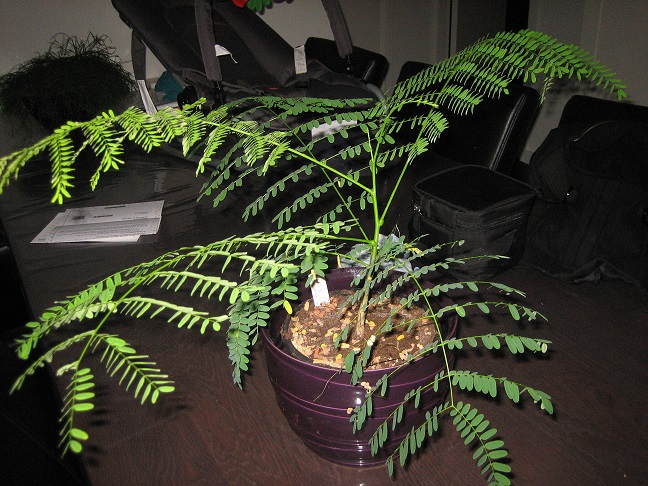 Van de flamboyant zijn er meerdere opgekomen, die ik van de zomer buiten heb gehad zijn niet erg hard gegroeid maar die ik binnen voor het raam heb staan ( keukenraam om het oosten) is aardig gegroeid.
