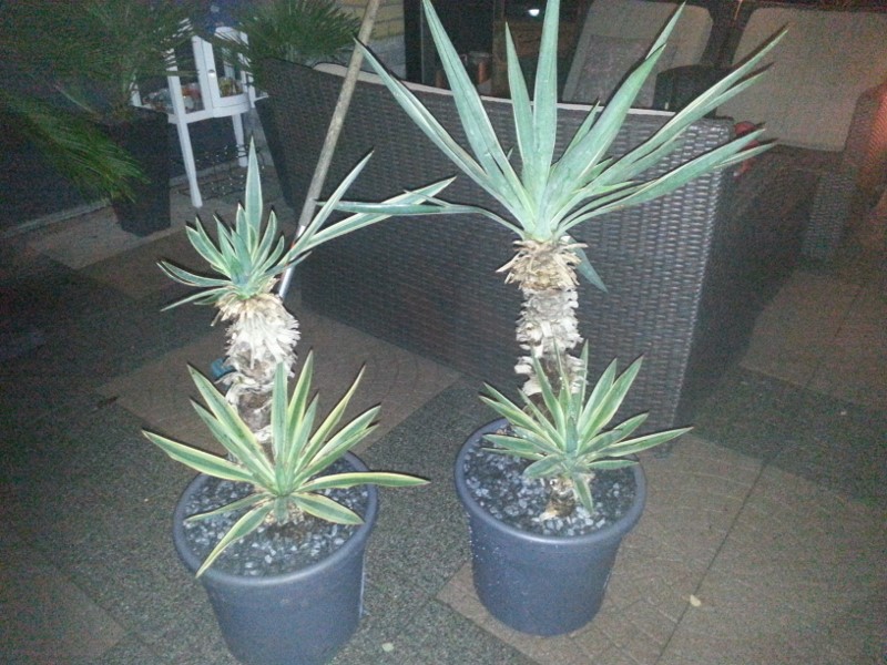 Bij mij bleek de Yucca gloriosa variegata toch veel zwakker dan zijn gewone broertje. Bij -22°C hier was de variegata die op amper 1.5 m van de gewone stond (dus compleet dezelfde omstandigheden) om zeep terwijl de gewone geen krimp heeft gegeven.