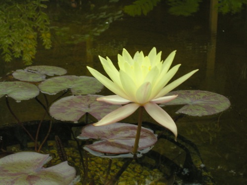 Na de bouw van het onderkomen voor de vorstgevoelige kuipplanten was het volgende project de tuinaanleg. Allereerst werd het perceel opgemeten en een plattegrond gemaakt voor het tuinontwerp met vijver en bestratingsplan. Een hoveniersbedrijf werd aangezocht voor de grondbewerking, vijveraanleg en de bestrating. De werkzaamheden gingen in februari van start en zoals op enkele foto’s is te zien leek het er meer of een baggerbedrijf aan de gang was. De tuin heeft geen afwatering en het hemelwater van het dak wordt afgevoerd via drainagebuizen onder de woning. De sloot achter het perceel ligt achter een 2 m hoge houtwal. Nadat de tuin volgens plan was ingedeeld, kon de beplanting erin. Ik had veel planten meegenomen uit de vorige tuin zoals Japanse esdoorns en bamboestekken. Na de bouw van de kas was veel grond over dat nu werd gebruikt om accenten in hoogte aan te brengen. In de laagste delen van de tuin werden greppels gegraven voor de tijdelijke berging van hemelwater.