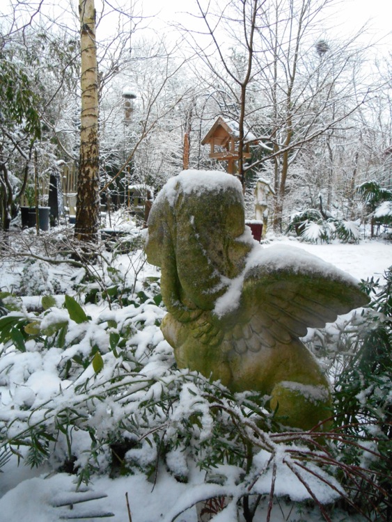 Vreselijke rotsneeuw! mijn trachy's zijn helemaal bezweken in de voortuin het blad doorgeknakt en het meeste door het gewicht helemaal naar beneden getrokken, om 11.00 uur stopt het en ga ik met de tuinslang alles afspuiten, hier vind alleen de hond het prachtig nu inmiddels 8 cm! behhhhh....
